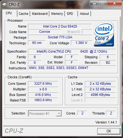 | Процессор (ядро) | Intel Core 2 Duo (Conroe) |