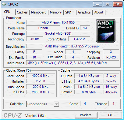 | Процессор (ядро) | AMD Phenom II X4 (Deneb) |