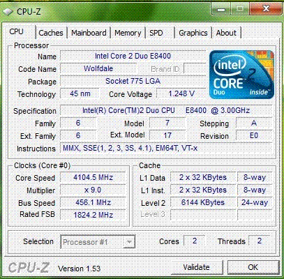 Результат разгона Intel Core 2 Duo (Wolfdale)