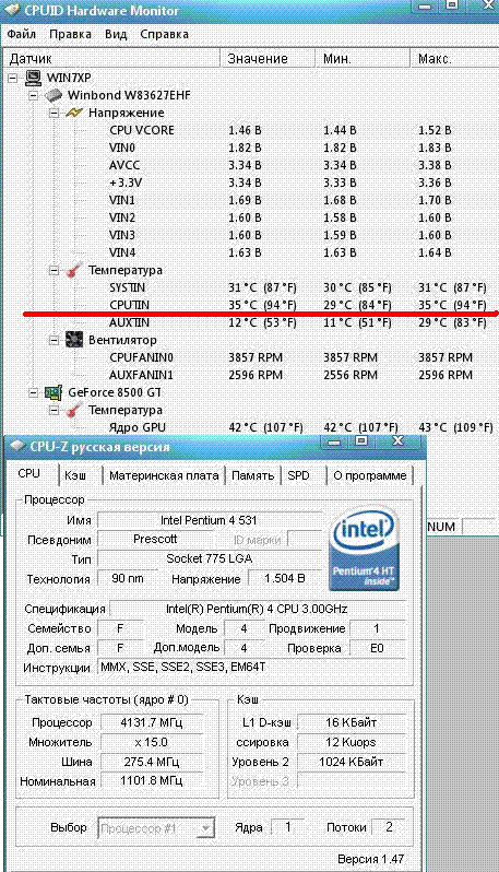 Результат разгона Intel Pentium 4 (Prescott)