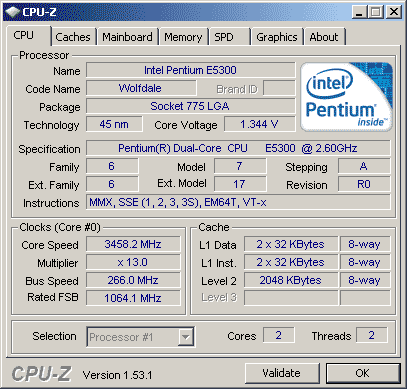 | Разгон, максимально стабильная частота (FSB x Ratio) | 3458 (266 x 13.0) |
