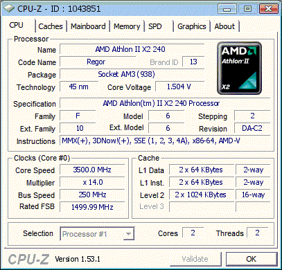 | Процессор (ядро) | AMD Athlon II X2 (Regor) |