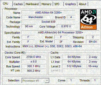 | Процессор (ядро) | AMD Athlon 64 (Venice) |