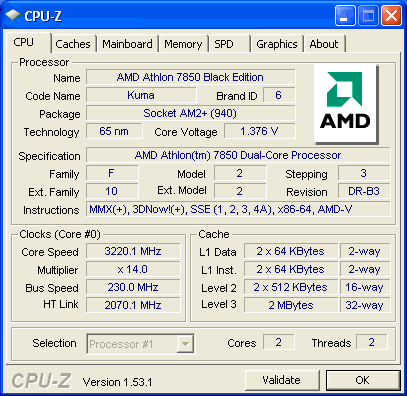 | Процессор (ядро) | AMD Athlon X2 (Kuma) |
