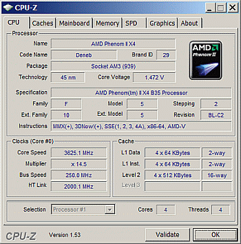 | Разгон, максимально стабильная частота (FSB x Ratio) | 3625 (250 x 14.5) |