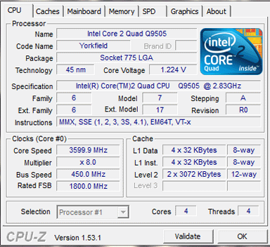 Результат разгона Intel Core 2 Quad (Yorkfield)