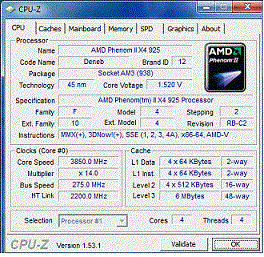 Результат разгона AMD Phenom II X4 (Deneb)