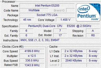 | Разгон, максимально стабильная частота (FSB x Ratio) | 4200 (336 x 12.5) |