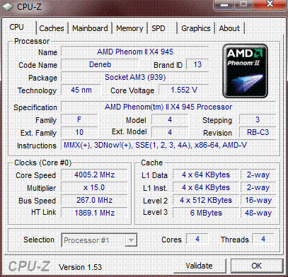 | Процессор (ядро) | AMD Phenom II X4 (Deneb) |