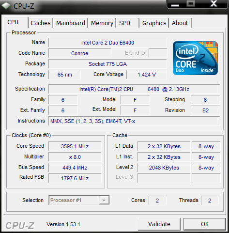 | Процессор (ядро) | Intel Core 2 Duo (Conroe-2M) |