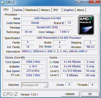Результат разгона AMD Phenom II X4 (Deneb)