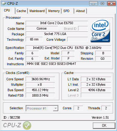 | Разгон, максимально стабильная частота (FSB x Ratio) | 3600 (450 x 8.0) |