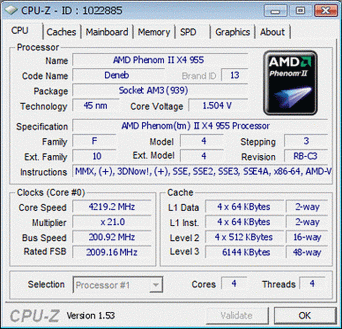 Результат разгона AMD Phenom II X4 (Deneb)