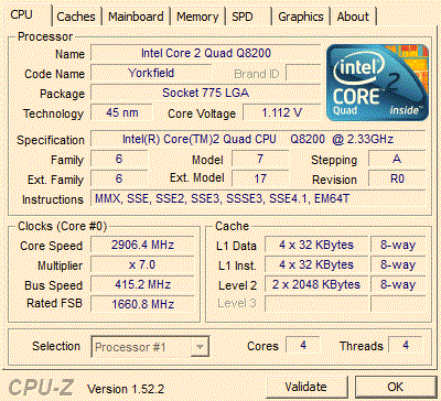 | Процессор (ядро) | Intel Core 2 Quad (Yorkfield) |