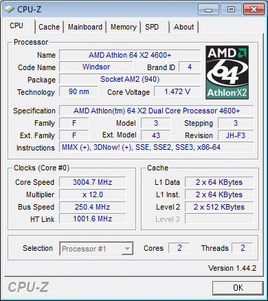 | Процессор (ядро) | AMD Athlon 64 X2 (Windsor) |