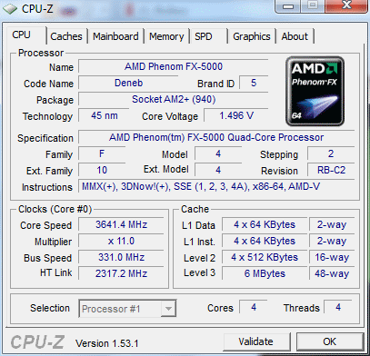 | Процессор (ядро) | AMD Phenom II X4 (Deneb) |