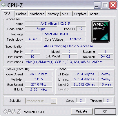 | Процессор (ядро) | AMD Athlon II X2 (Regor) |