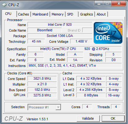 Результат разгона Intel Core i7 (Bloomfield)