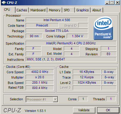| Процессор (ядро) | Intel Pentium 4 (Prescott) |