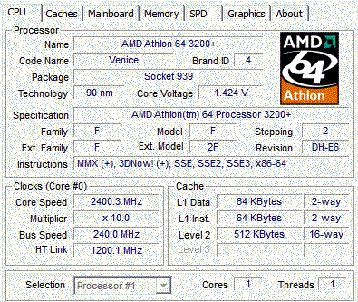 | Процессор (ядро) | AMD Athlon 64 (Venice) |