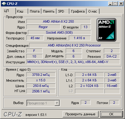 | Процессор (ядро) | AMD Athlon II X2 (Regor) |