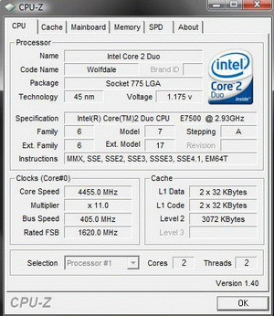 Результат разгона Intel Core 2 Duo (Wolfdale)