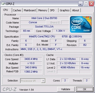 Результат разгона Intel Core 2 Duo (Conroe)