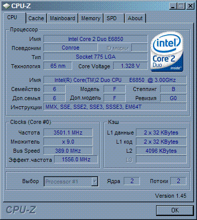 | Процессор (ядро) | Intel Core 2 Duo (Conroe) |