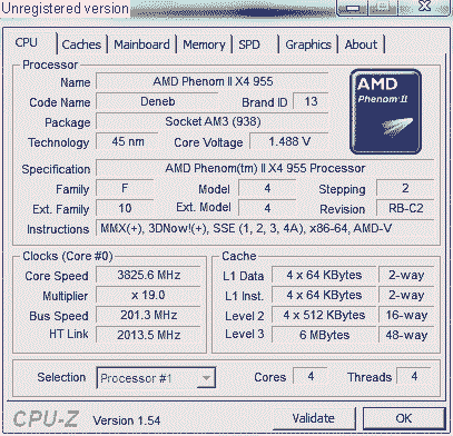 Результат разгона AMD Phenom II X4 (Deneb)