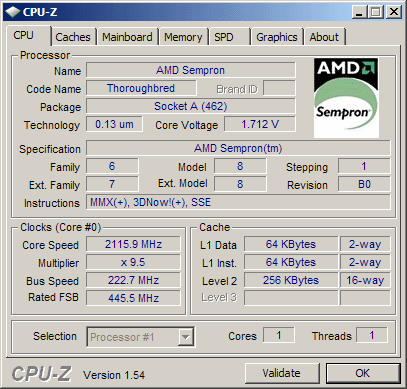 | Процессор (ядро) | AMD Sempron (Thoroughbred) |