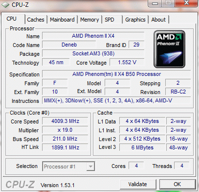 | Процессор (ядро) | AMD Phenom II X4 (Deneb) |