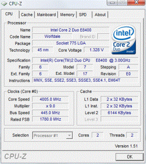 | Разгон, максимально стабильная частота (FSB x Ratio) | 4005 (445 x 9.0) |