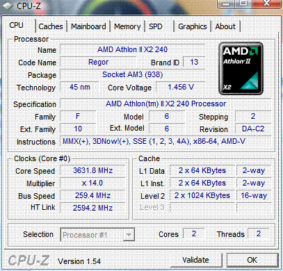 | Процессор (ядро) | AMD Athlon II X2 (Regor) |