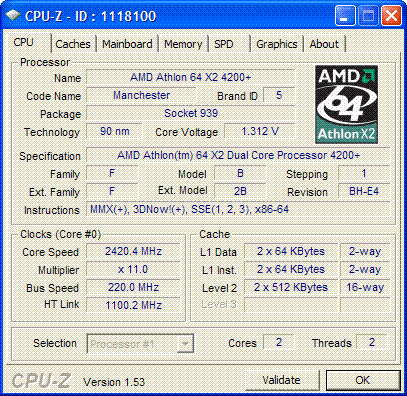 Результат разгона AMD Athlon 64 X2 (Manchester)