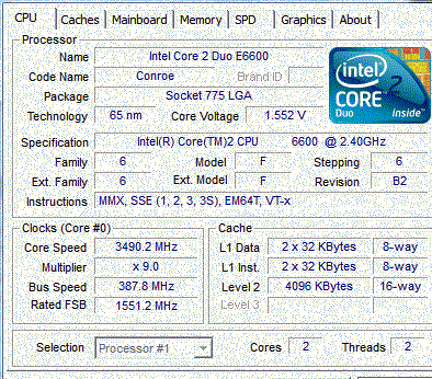 | Процессор (ядро) | Intel Core 2 Duo (Conroe) |