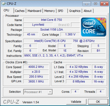 | Разгон, максимально стабильная частота (FSB x Ratio) | 4000 (200 x 20.0) |