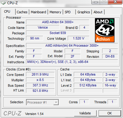 | Процессор (ядро) | AMD Athlon 64 (Venice) |