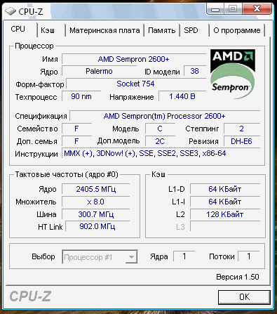 | Процессор (ядро) | AMD Sempron (Palermo) |