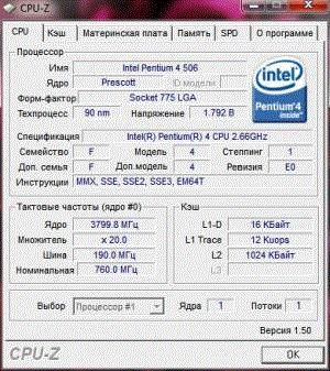 | Процессор (ядро) | Intel Pentium 4 (Prescott) |