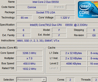 | Процессор (ядро) | Intel Core 2 Duo (Conroe) |