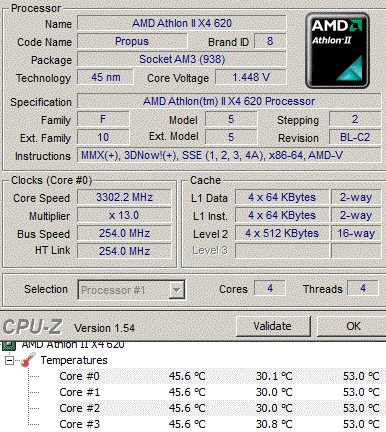 Результат разгона AMD Athlon II X4 (Propus)