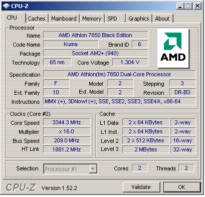 | Процессор (ядро) | AMD Athlon X2 (Kuma) |
