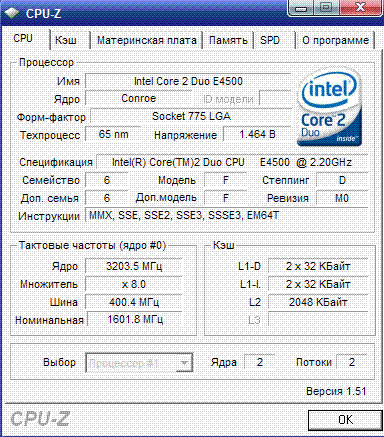 | Процессор (ядро) | Intel Core 2 Duo (Conroe-2M) |