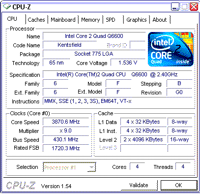 Результат разгона Intel Core 2 Quad (Kentsfield)