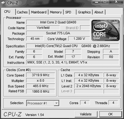 Результат разгона Intel Core 2 Quad (Yorkfield)