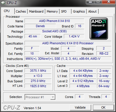 | Процессор (ядро) | AMD Phenom II X4 (Deneb) |