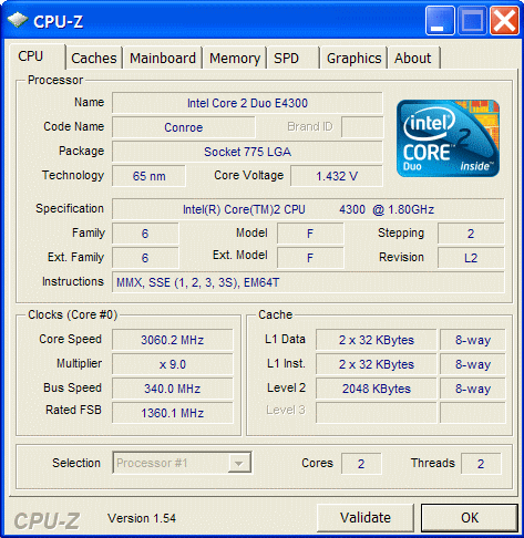 Результат разгона Intel Core 2 Duo (Conroe)