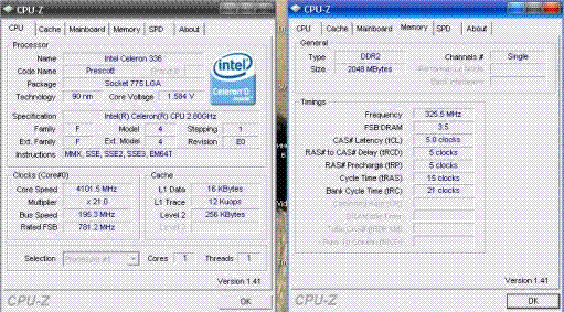 Проц работает стабильно до 195MHz по шине,на 1MHz выше выдается BSOD.Две линейки по 512мб 667MHz Corsair,бп 350W FSP.Все стало значительно быстрее!