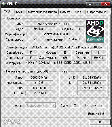 Результат разгона AMD Athlon 64 X2 (Brisbane)