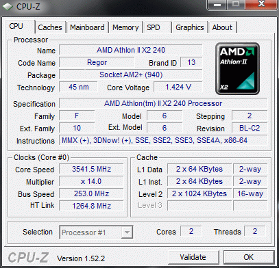 | Процессор (ядро) | AMD Athlon II X2 (Regor) |